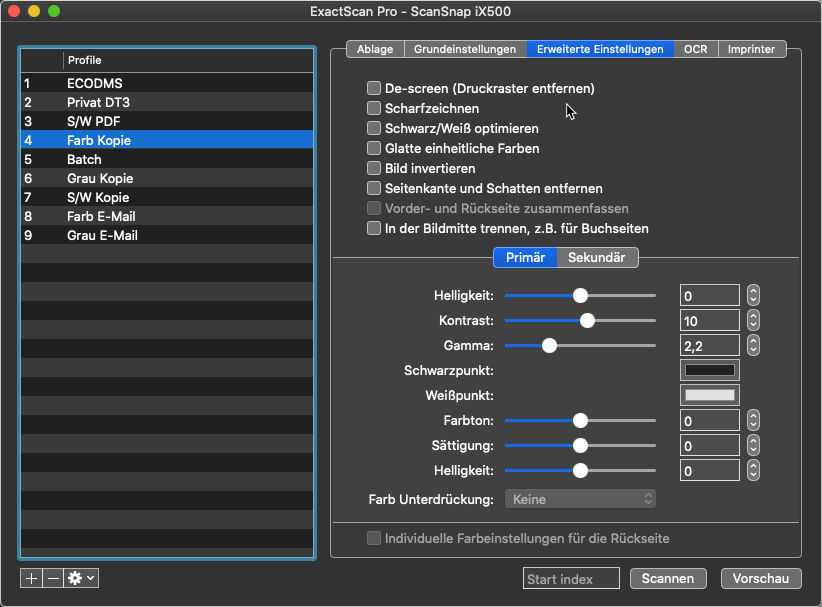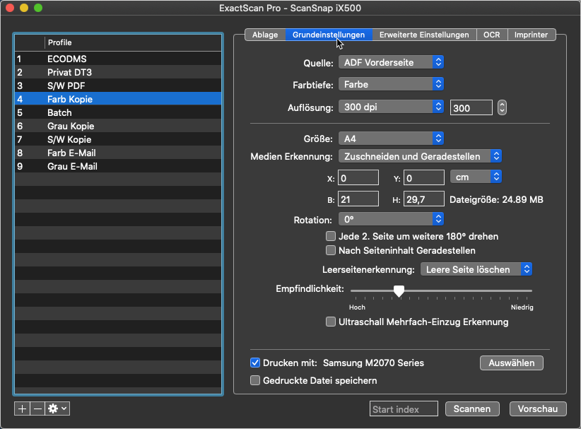 Hier gibt es noch zahlreiche Möglichkeiten, um Deine Scans zu optimieren. Ich empfehle Dir einfach die Einstellungen zu testen, um nach Deinen Vorgaben, z.B. OCR oder der weiteren Verarbeitung Deiner Scans die bestmögliche Einstellung zu finden.