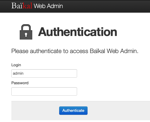 - Generate a link using URL: 'https://IPAdresse/baikal/admin/' or bookmark it in you browser.