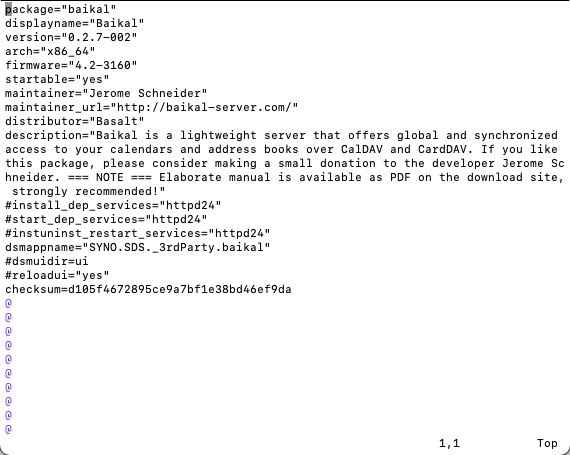 The path to the file is /var/packages/baikal/INFO