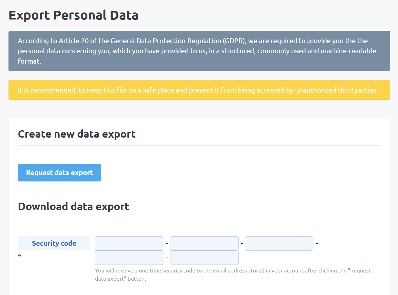 Surely, my privacy policy applies also the forum. You can read it here. Further to this, if you like to know which data I got from you, you can initiate an export of your data. Press the button Request data export and an email with the security code is sent to you. You will find this option in Manage my account -> Privacy Protection ->Export personal data: