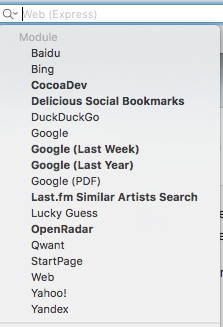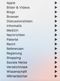 Google, Yahoo, Bing, das Web, DuckDuckGo and much more.