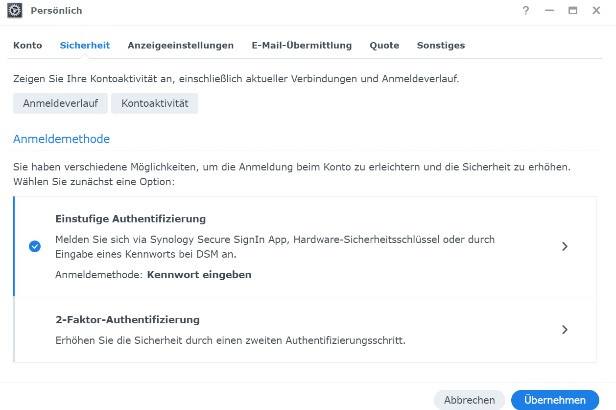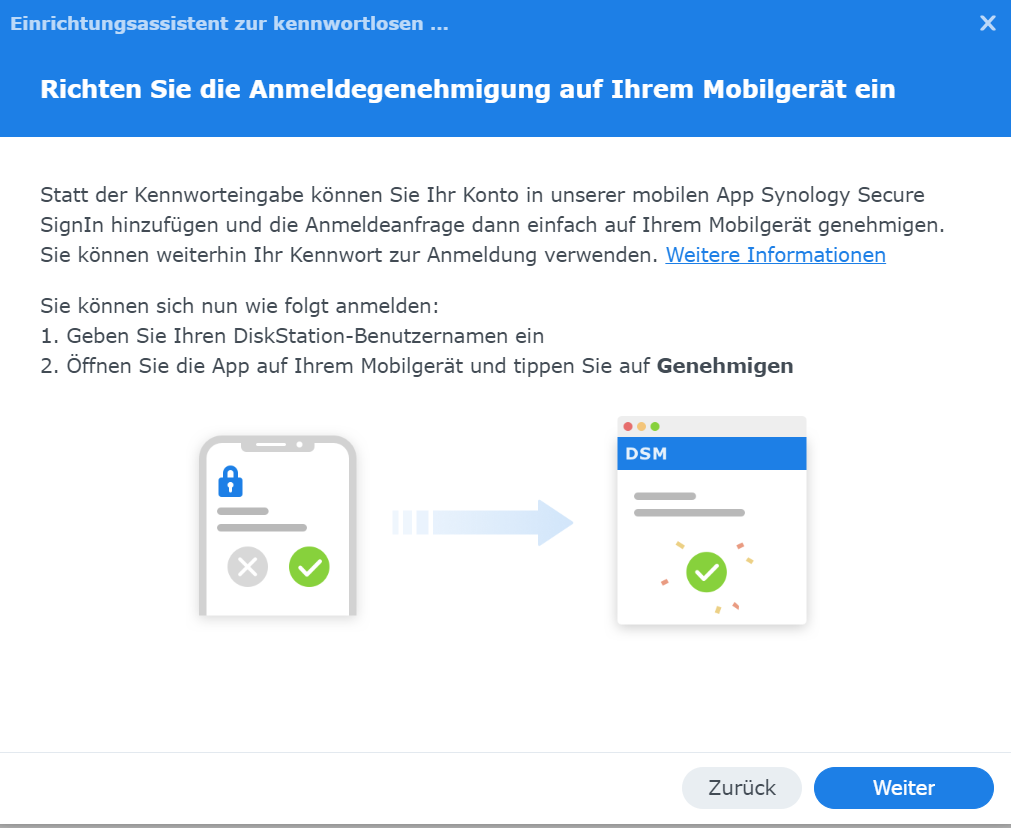 Deine Synology hat die Zukunft eingeläutet mit passwortlosen Einloggen und es nutzt Single-Sign-In, um Dich mit Deiner Synology zu verbinden.