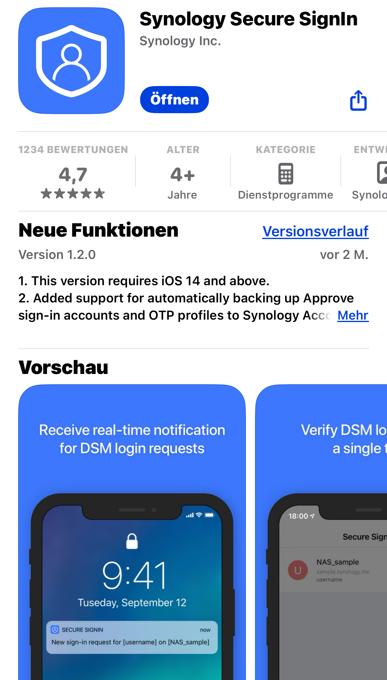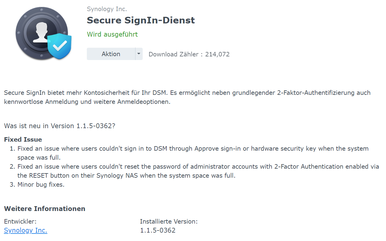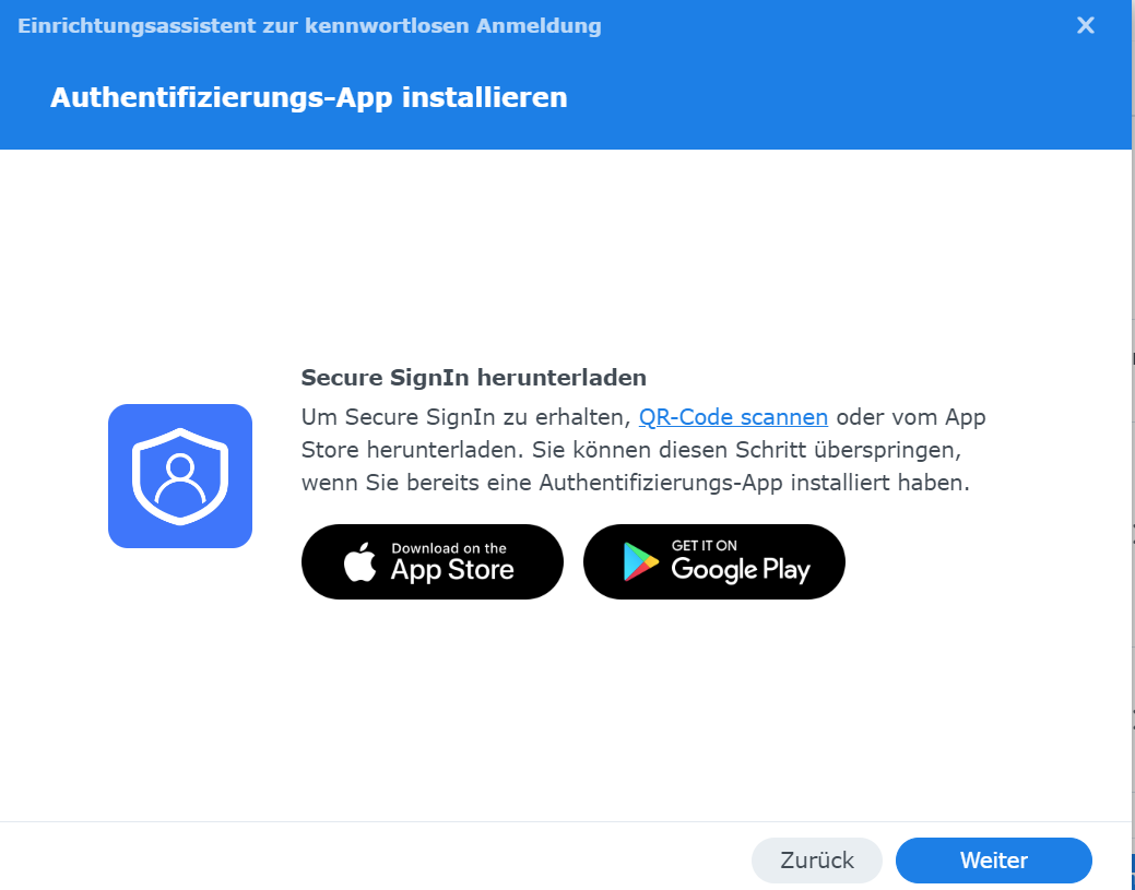 Lade die App herunter. Hierzu kannst Du den Link auf Deiner Synology nutzen oder im AppStore nach "Secure SignIn" suchen.