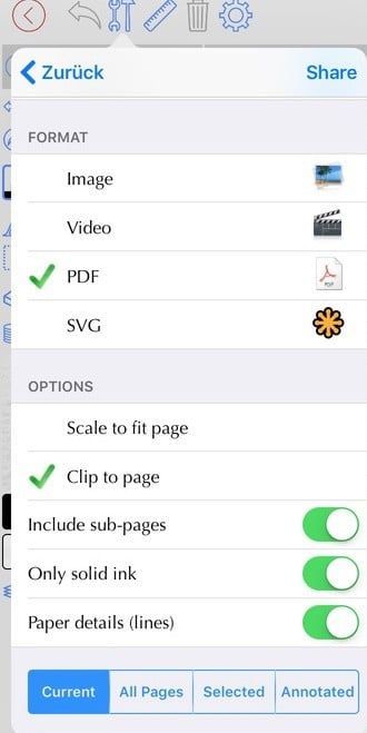Nur die aktuellste Seite exportieren.Natürlich macht das Sinn, wenn man viele Seiten hat und nur eine teilen möchte. - All Pages