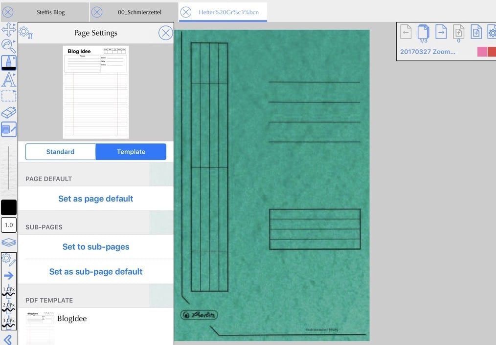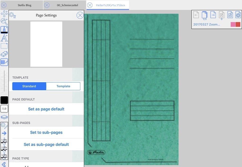 Wie bereits erwähnt kannst Du Deine eigenen Vorlagen ganz einfach in ZoomNotes einsetzen und zwar als Dokumenten- und Seitenvorlage.