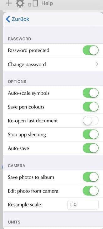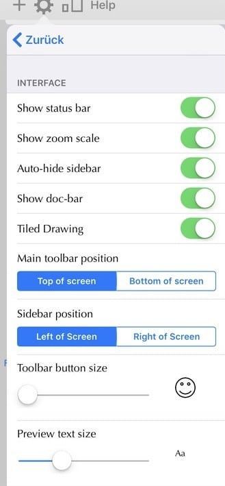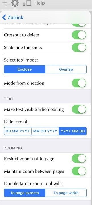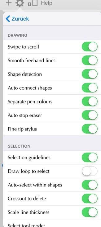 Hier machst Du sämtliche Einstellungen, wie ZoomNotes aussehen soll und was es können soll.