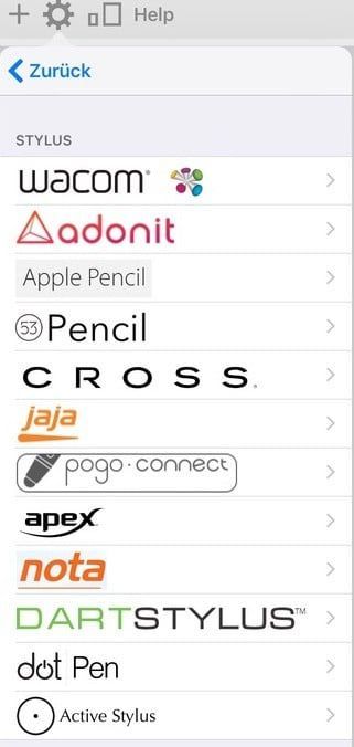 Hier sind Deine Einstellung für Deinen Stift. Nutzt Du Adonit wird hier das Logo von Adonit angezeigt und Du kannst Deinen Stift hier koppeln. - Seiten-Symbol