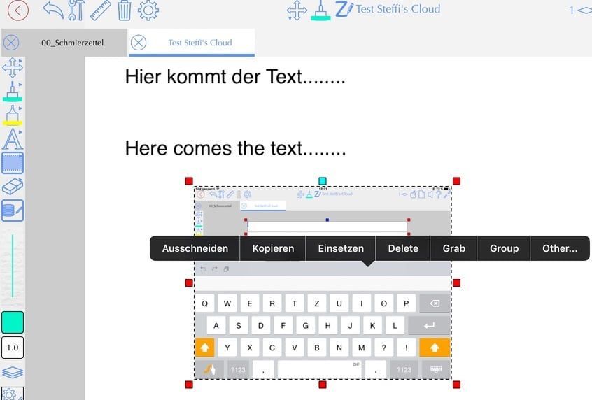 Ich möchte Dir noch zeigen, dass es noch viel mehr Möglichkeiten in ZoomNotes gibt, als „nur“ ein Bild einzufügen.