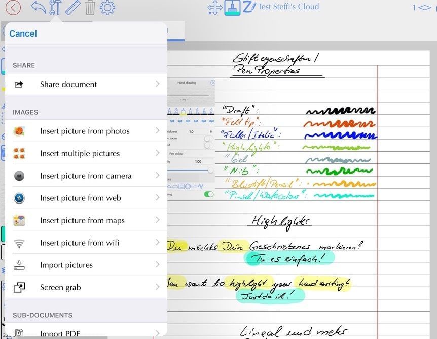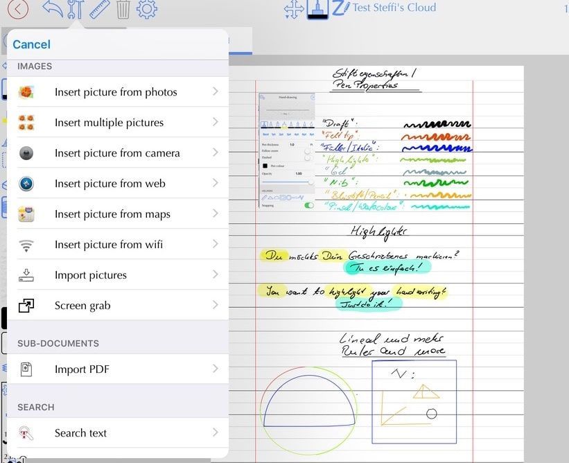 Wie auch in den handschriftlichen Notizen, kann alles Importiert oder exportiert werden werden was Du möchtest um Deinen Text anschaulicher zu machen.