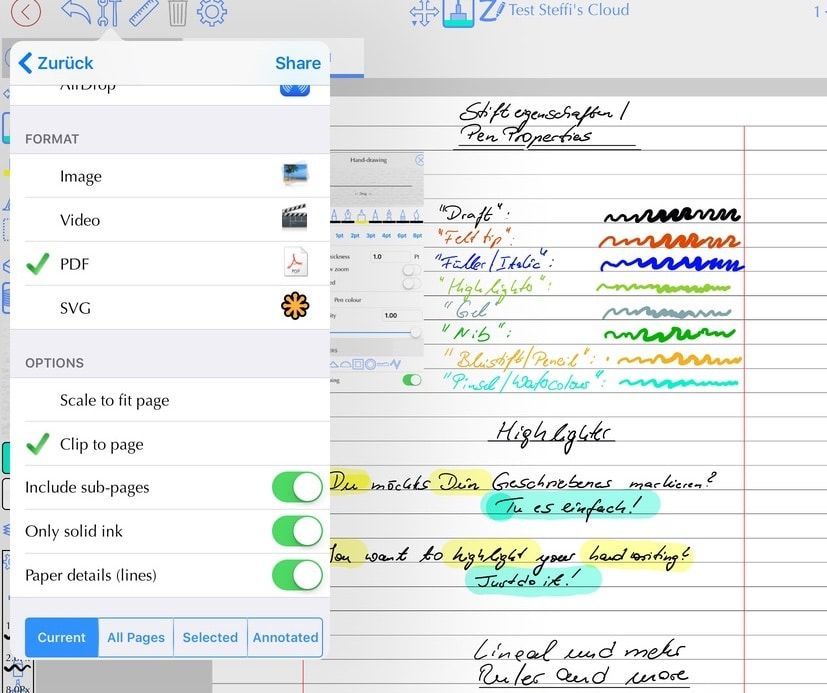 Für all diese Möglichkeiten stehen die Optionen zur Verfügung, auf welche in einem Video-Artikel über ZoomNotes sehr genau eingehen werde.