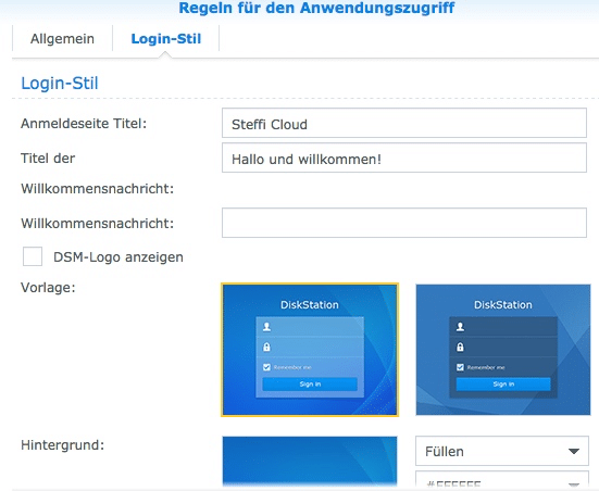 Sinn macht das zum Beispiel für die FileStation, wenn Du Daten Austauschen möchtest, welche mit einem Login gesperrt sind. Um Besuchern oder Deinen Freunden zu zeigen, dass diese auf der richtigen Seite sind, kannst Du hier Deine persönlichen Einstellungen und Logos nutzen.