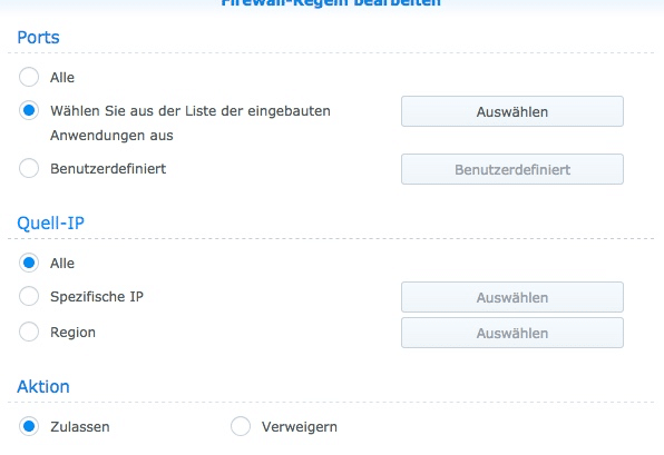 Systemsteuerung - Sicherheit - Firewall - Regeln bearbeiten.