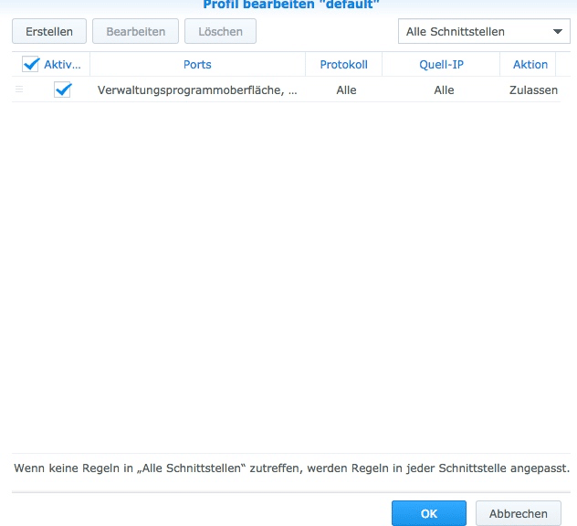 verwaltet alles was geschehen oder vielmehr was nicht geschehen soll. Als Profil ist das „default“ aktiviert, welches wir uns jetzt genauer ansehen werden indem Du auf „Regeln bearbeiten gehst“.