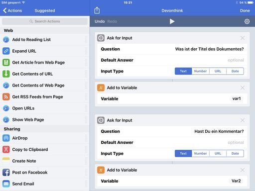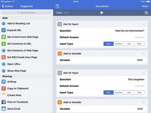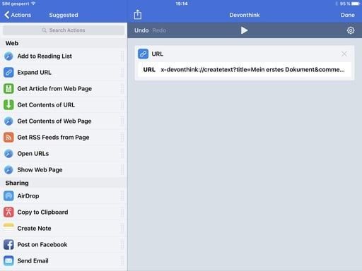 Seit dem Update 2.1.3 stehen nunmehr erweiterte x-Callback-Funktionen zur Verfügung, sowie gibt es jetzt eine direkte Anbindung an Workflow.is.