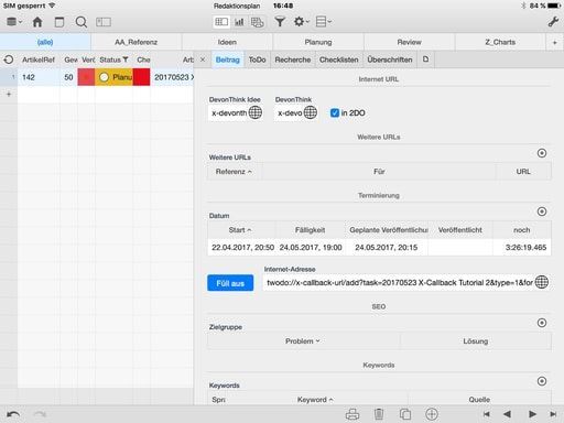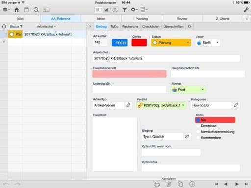 Ich nutze Ninox, welches ich erst entdeckt habe, für meinen Redaktionsplan und der Integrierung meiner Daten in 2Do, AirMail und DTPO / DTTG.