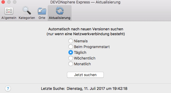 Ganz zum Schluss kommt natürlich die Aktualisierung von DEVONsphere Express und wie der Intervall für Updates vonstatten gehen soll.