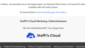 Für ein Jahr können Sie sich einen Werbeplatz auf Steffi's Cloud sichern - an prominenter Stelle innerhalb der Webseite, Blog und Forum.